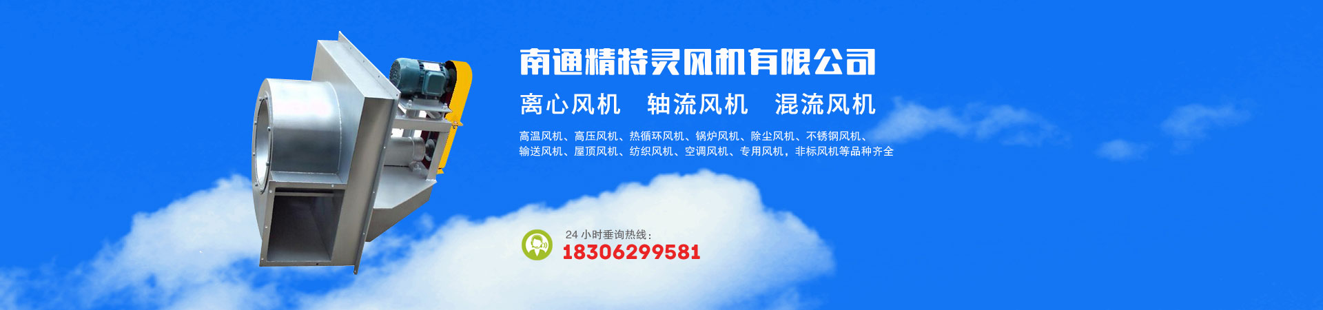 南通精特靈風機有限公司,我公司是風機專業設計、制造企業,20余年專業生產各類離心風機,軸流風機,混流風機。